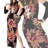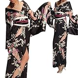 - 花魁系SEXY和柄着物ロングドレス/肩出しOK!黒/浴衣羽織/xc97/作者不明