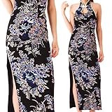 - 上品な和花柄☆ホルターチャイナドレス黒x青ラメ入/uc31/作者不明