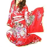 - 花魁系ガウンタイプ♪サテン地着物ロングドレスM赤/ac52/作者不明