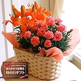 - 【送料無料】ピンクカーネーション5号鉢とオレンジ百合5号鉢のセット【母の日ギフトお届5/5~5/9】/花のギフト社