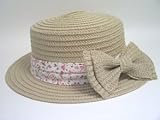 - ハット 帽子(大きなリボン&小花柄がポイントです♪綿ミックスのブレードカンカン帽☆ベージュ)/作者不明