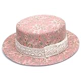 - ハット 帽子(レースリボンがアクセント♪小花柄が可愛いカンカン帽/ピンク☆全3色あります)/作者不明