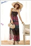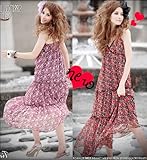 - 孔雀柄 リゾート シフォン マキシ丈 ドレス ワンピ 【ワイン】/作者不明
