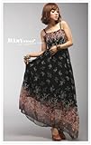- 着痩せ美脚効果!シフォン マキシ丈 ドレス 小花柄 ワンピース 【ブラック】/作者不明