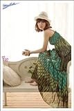 - 孔雀柄 リゾート シフォン マキシ丈 ドレス ワンピ 【グリーン】/作者不明
