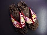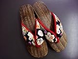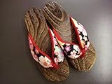 浴衣&デニムに♪サンダル下駄焼桐茶台赤色地梅古典小花/作者不明