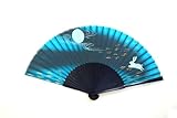 - 高級シルク扇子 月とうさぎブルー 【2本組】/作者不明