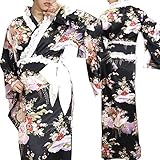 - レースステッチが可愛さアップ花魁系サテン地着物ロングドレス/黒/as39/作者不明