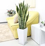 【ブルーミングスケープ】空気を浄化するといわれている大きめサンスベリアのホワイト陶器鉢/作者不明