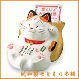 錦彩大当り招き猫(小・白)(宝くじ入れ貯金箱) 高さ11.5cm ねこ 置物 商売繁盛 ギフト.../純和製せともの本舗