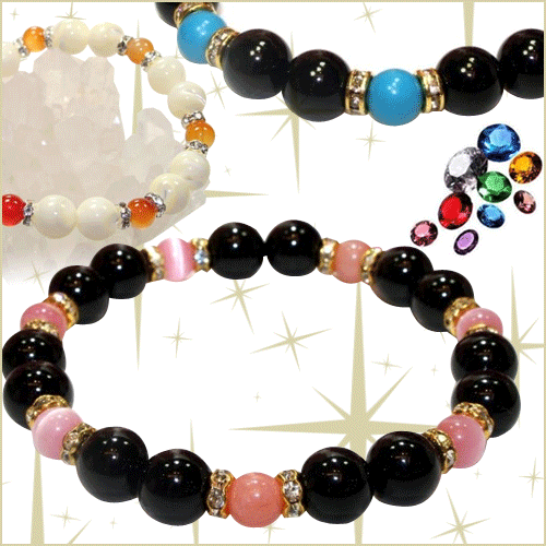 【ギフト最適品】誕生石 VS 星座石ブレスレット オニキス、マザーオブパール、オーロラクォーツ...
