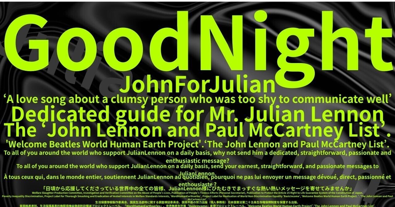 GoodNight.DedicatedguideforMr.JulianLennon.'WELCOME BEATLES World Human Earth Project'.‘The John Lenn|miki kumagaiPaul McCartney Got Back paulmccartneygotback.com Paul McCartney Got Back paulmccartneygotback.com Paul McCartney Got Back paulmccartneygotback.com …note.com