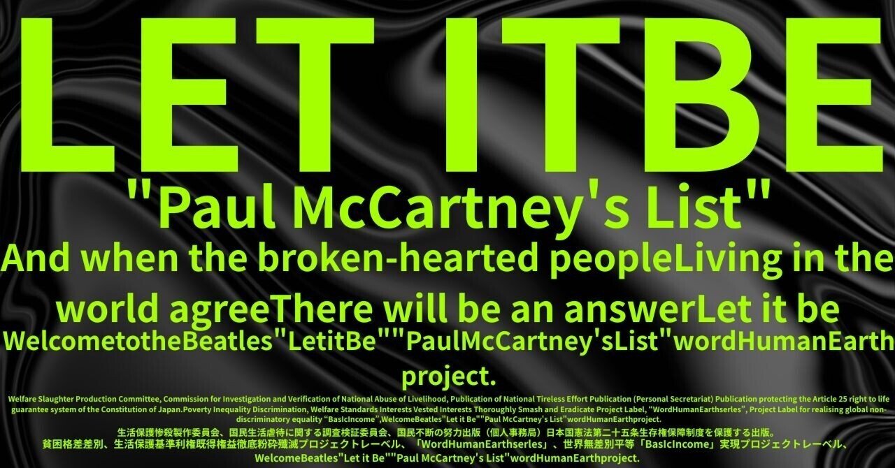 生活保護惨殺極著版第四部生活保護基準利権勢力国民分断線敷設作戦、'WELCOME BEATLES,LET IT BE,‘"GETBACK",Paul McCartney's List’.World Hu|miki kumagai"Let it Be""Paul McCartney's List" "Let it Be" "Paul McCartney's List" @paul.mccartney.privat docs.google.com Paul McCartney Got Back paulmccartneygotback.com …note.com