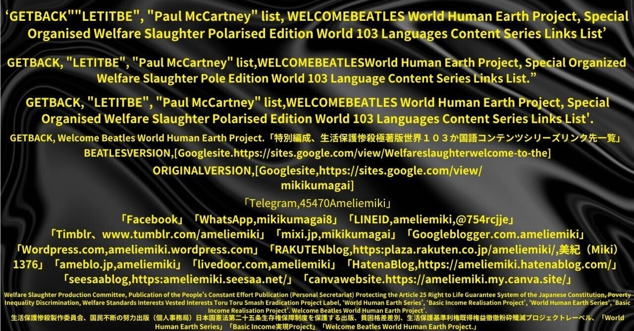 生活保護惨殺極著版第七部生活保護基準利権勢力水際作戦日本語版、'WELCOME BEATLES,LET IT BE,‘"GETBACK",Paul McCartney's List’.World Hum|miki kumagai"Let it Be""Paul McCartney's List" "Let it Be" "Paul McCartney's List" @paul.mccartney.privat docs.google.com Paul McCartney Got Back paulmccartneygotback.com …note.com