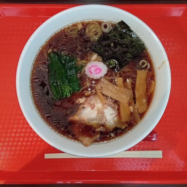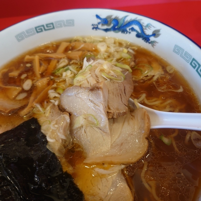 スープは、濃い目の醤油色、脂が浮いた感じもいい