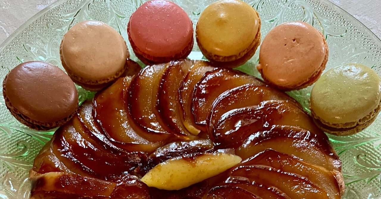 てなところで今日の写真は、リスキチと私がフライパンでつくったリンゴバナナケーキ、マカロン飾り。