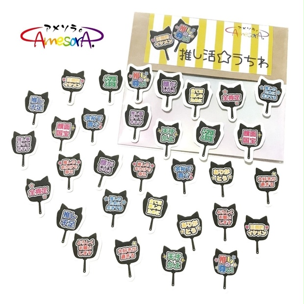 【オリジナル】推し活☆うちわフレークシール - アメソラ。 - BOOTH✽+†+✽――✽+†+✽――✽+†+✽―― 閲覧ありがとう御座います✩.*˚ ◆内容 推し活向きのフレークシールです! 可愛い猫型のファンサ用うちわになっています。 お手紙や手帳、日記などに*ˊᵕˋ* [商品詳細] ・合計 32枚入(画像2枚目参照) ・サイズ(画像参照) 約2×2.5cmぐらい ・素材:普通紙 ★注意★ ・家庭用のインクジェットプリンタで…32x3b.booth.pm