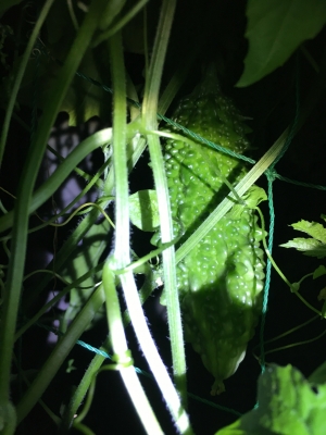夜中の写真ですが、ゴーヤもう庭で出来た!