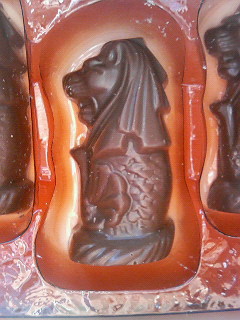 ふぅ…。今日は職場で打ち合せがありました。年明けでイロイロと決める事が沢山あって、久々に頭を使ったせいか少々頭痛気味…その後、自分の仕事をしていたら同僚から嬉しい差し入れが…マレーシアに行ったお土産だそうで、マーライオンの形のチョコレートオイシク頂いちゃいました(≧▽≦)そして、そんな事をしている間に気が付いたら夜の9時今日は約14時間労働でしたホント疲れたよ…。でも、今日は職場での問題も無事に解決して悩みも解消。ホッとしました~明日も頑張るぞっ!