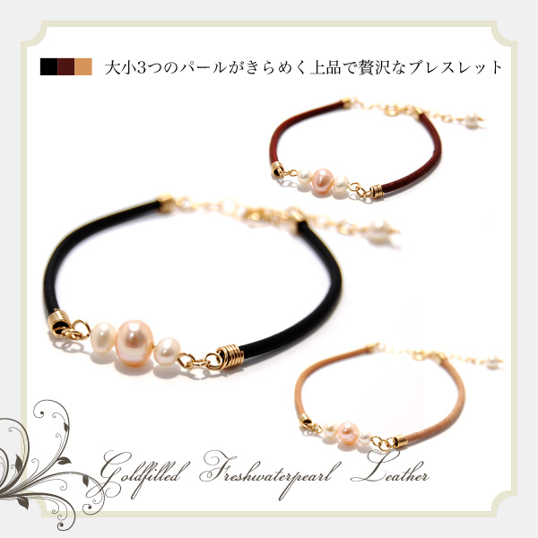 “ゴールドフィルドと栃木レザーと淡水パール”のブレスレット!!