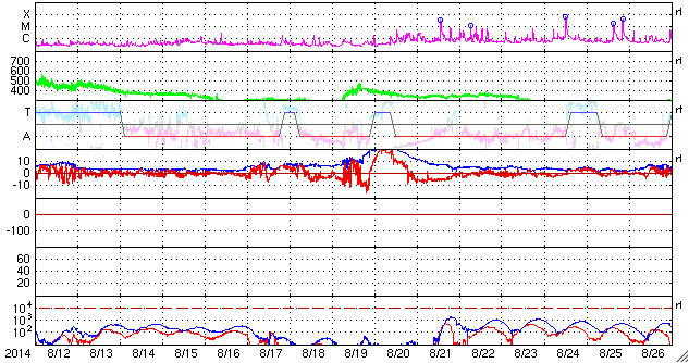 カナダ地磁気モニターの波形からは、UT18時台、21時台がアジア方向を捉えているようにも思えます。
