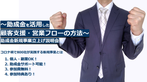 ~助成金を活用した 新たな顧客支援・営業フローの方法~ 助成金新規事業立ち上げ説明会4月12日(火)13:30〜14:30~助成金を活用した新たな顧客支援・営業フローの方法~助成金新規事業立ち上げ説明会・説明会でご紹介する仕組みを実践している企業は、16ヶ月で800社を超える・個人事業主や小規模事業主にも多数の事例があります詳細をみる★~助成金を活用した新たな顧客支援・営業フローの方法~助成金新規事業立ち上げ説明会「助成金」を武器にできる新規事業が注目を集めています! 昨年4月から始まり、すでに800社以上が事業化に成功している「助...mgmtsys.jdnw.jp
