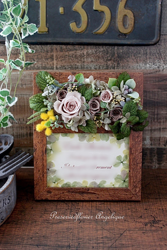 文字のカラーはフレームとアレンジのカラーに合うようにブラウンで入れました。