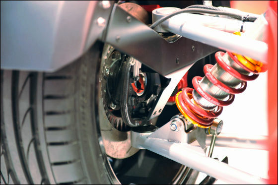 まるでレーシングカーのように剥き出しのサスペンション