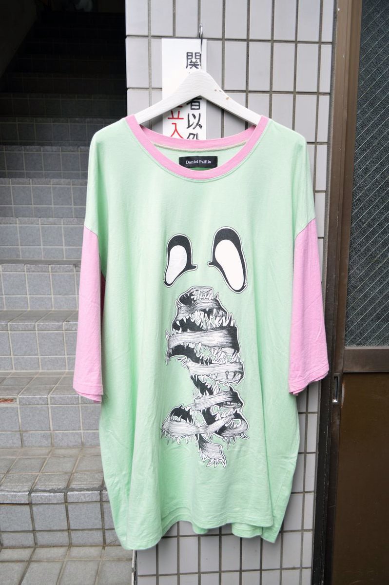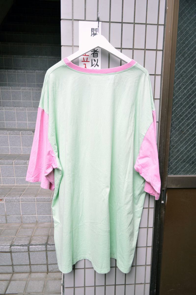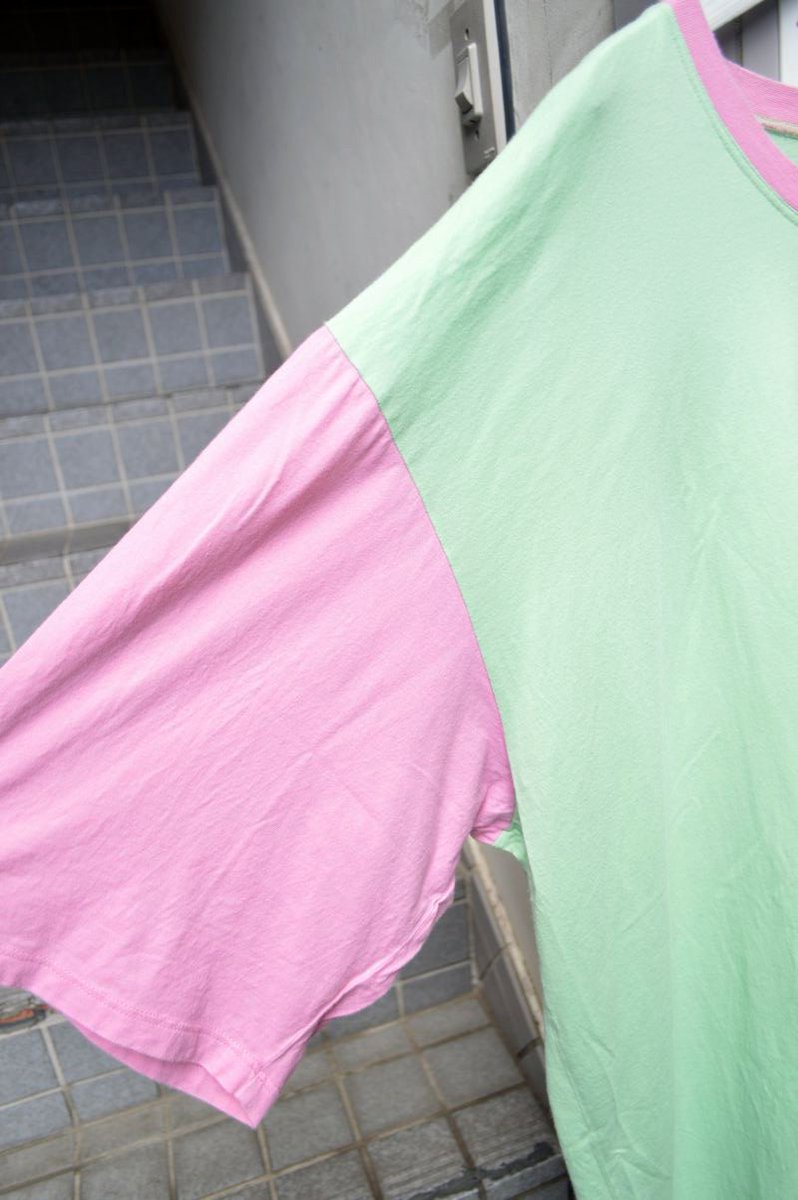 グリーン×ピンク切替デザインオーバーサイズカットソー