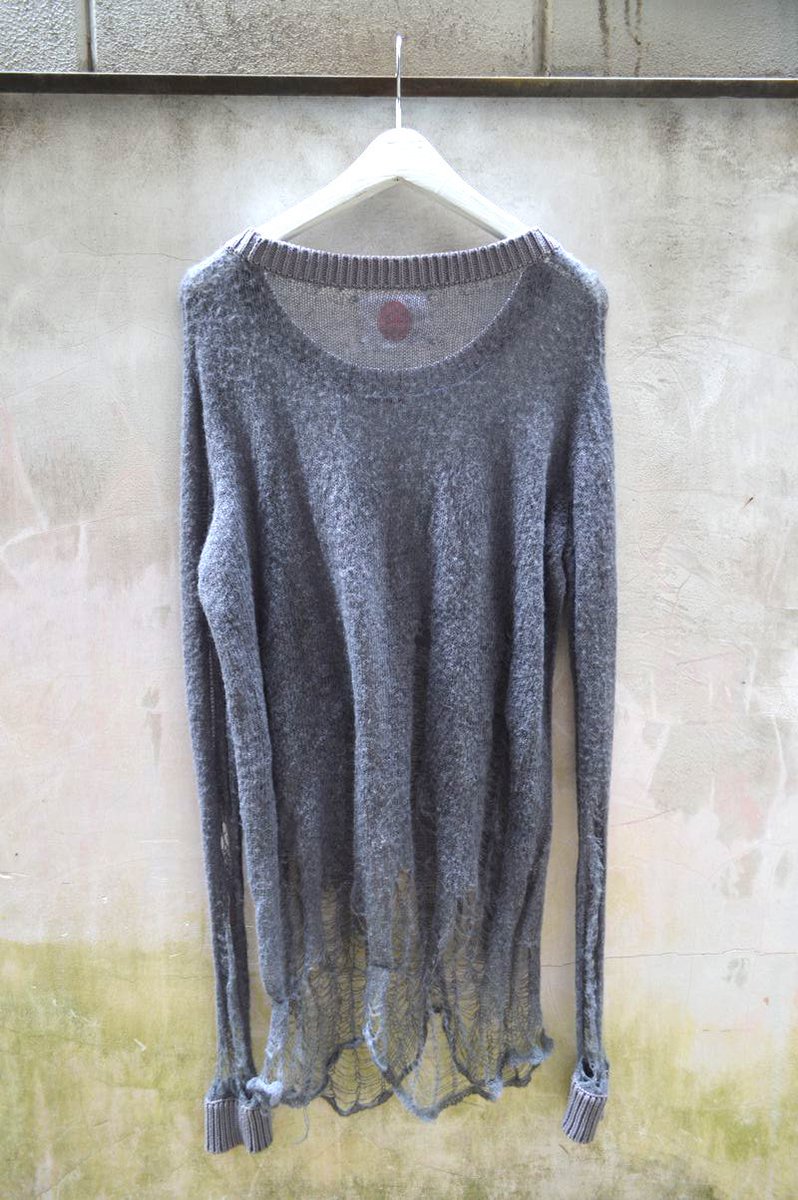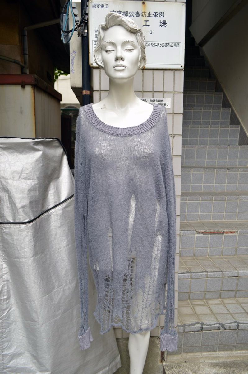 ダメージ加工ハイゲージニット