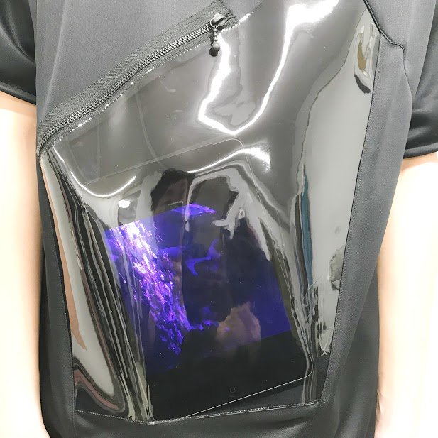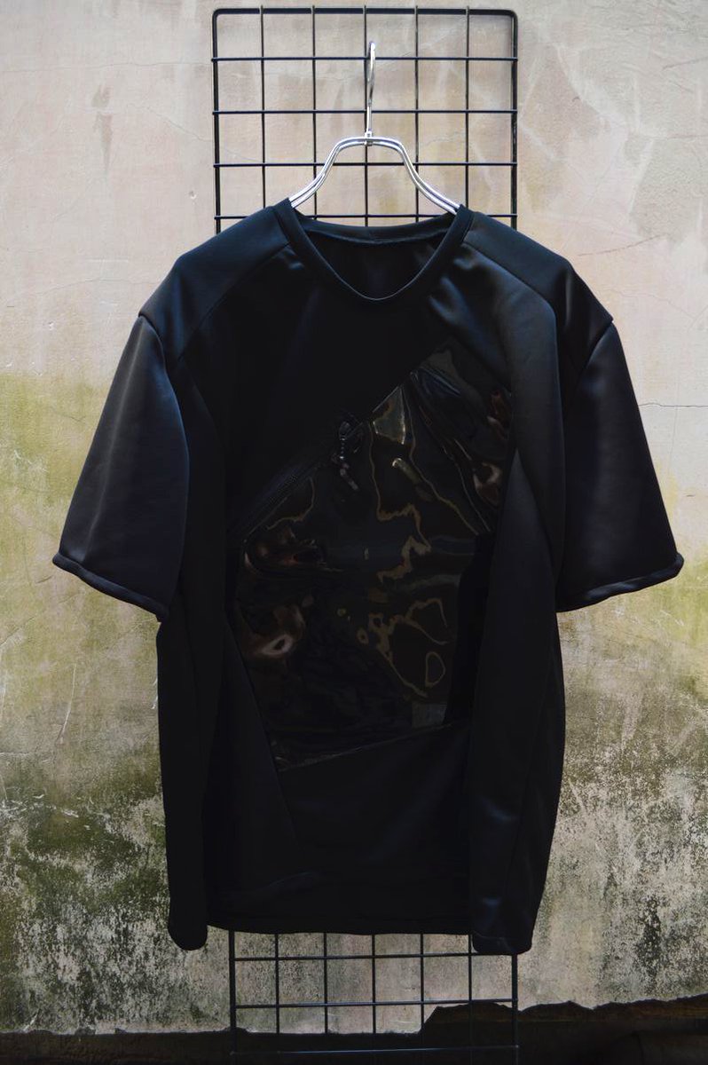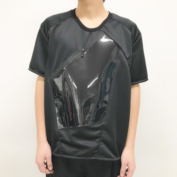 ビニール素材の半透明ポケットのデザインが特徴的な一品です。