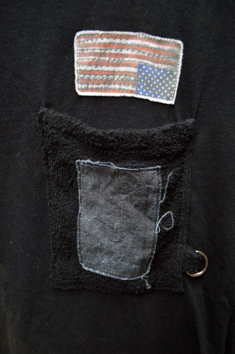 パッチ装飾ブリーチ半袖カットソー 黒
