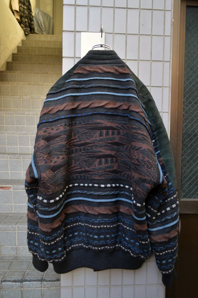 3D立体編みニット×レザー切替ブルゾン