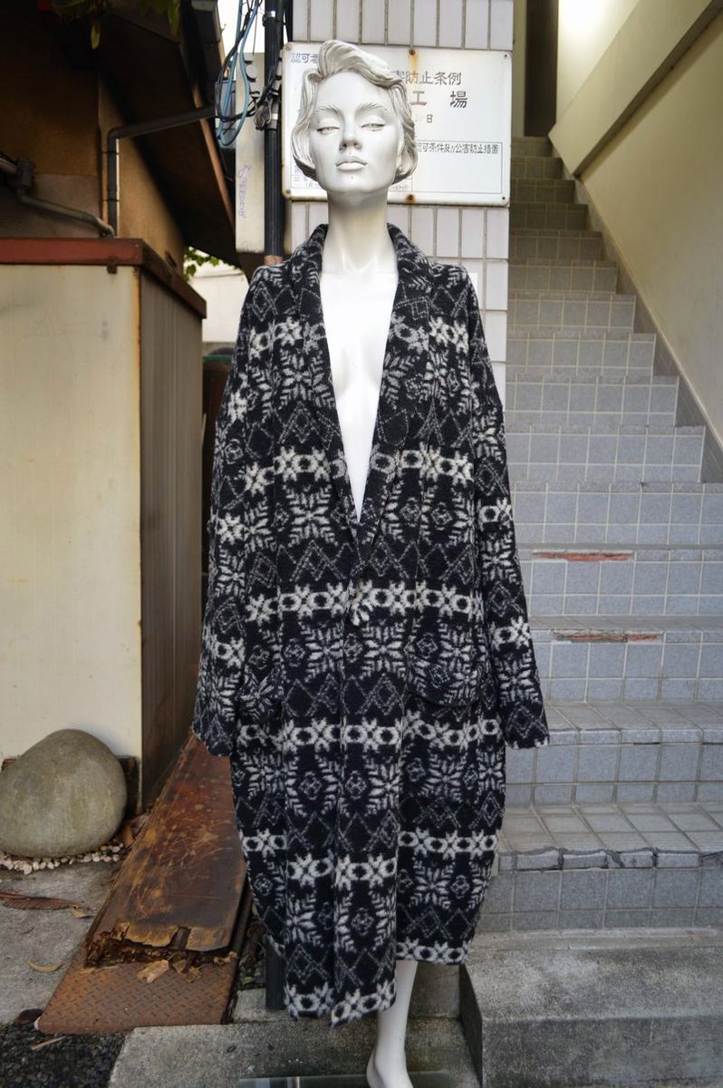 総柄ウール地羽織りコート