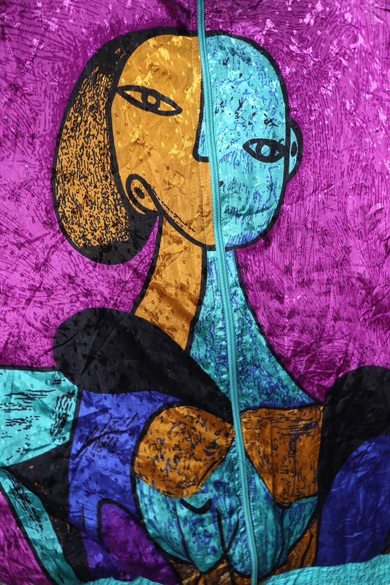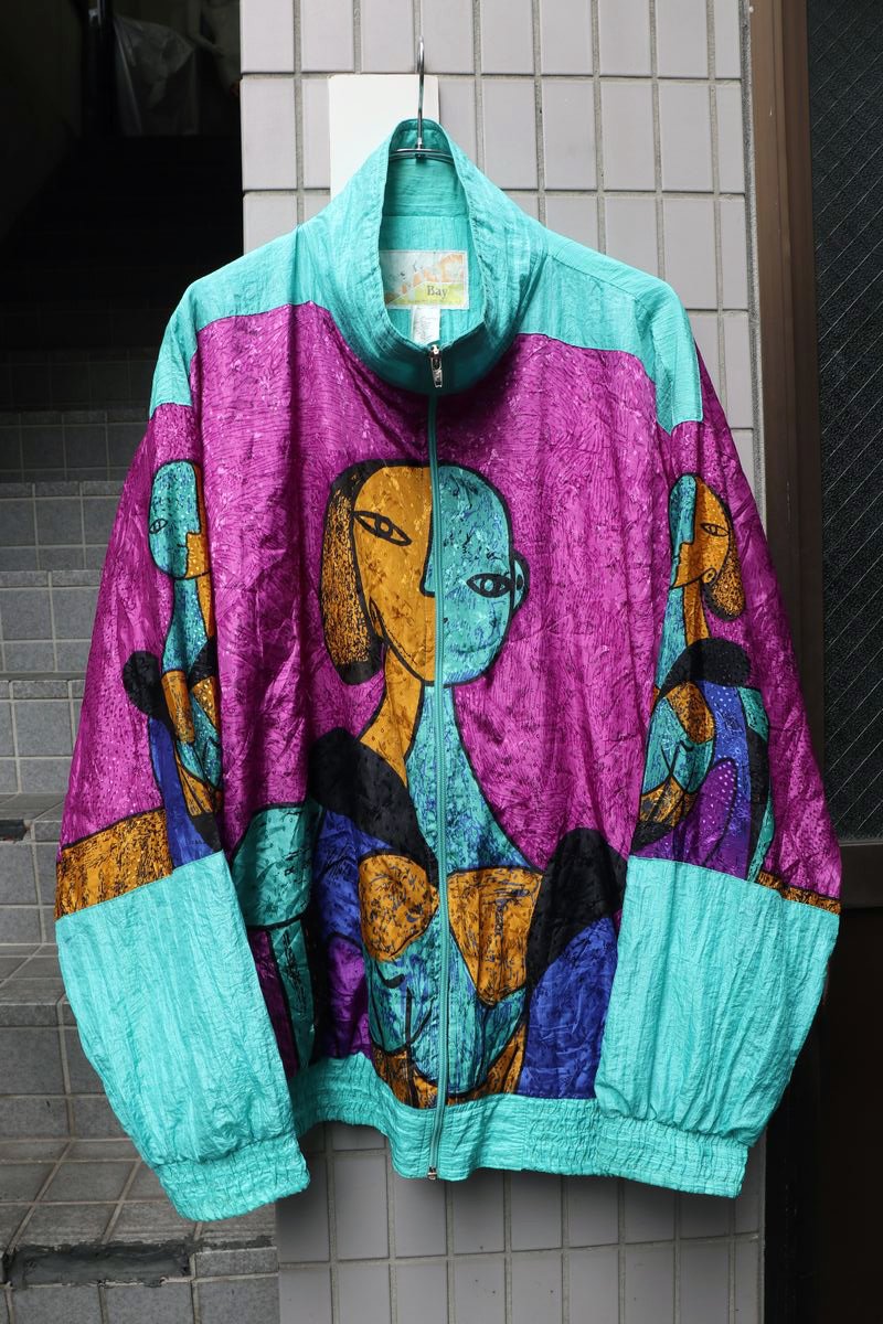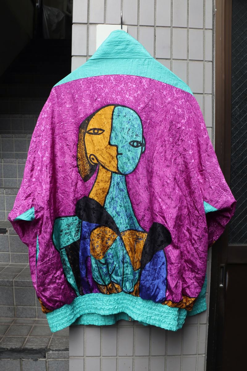 ピカソ柄ハイネックウィンドブレーカーブルゾン