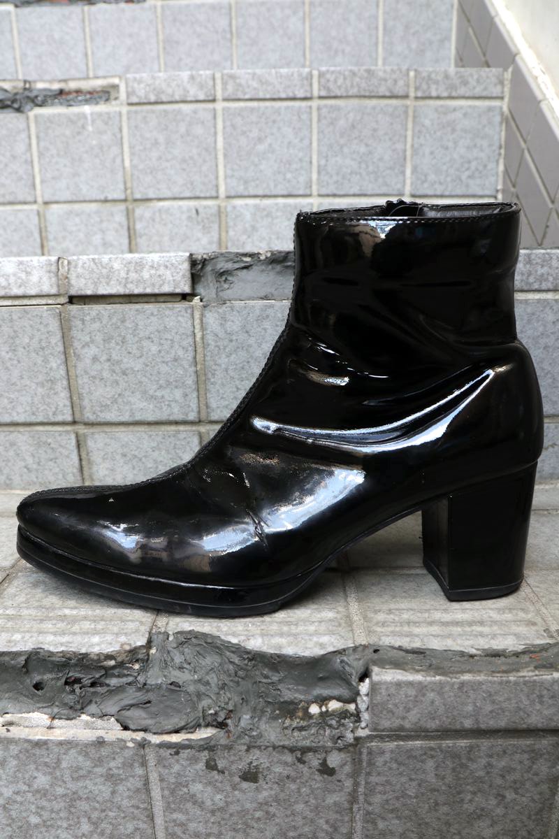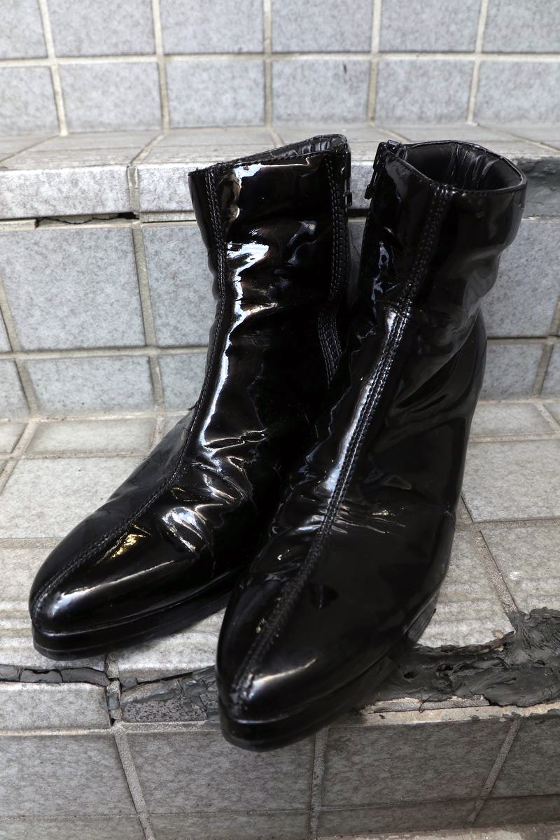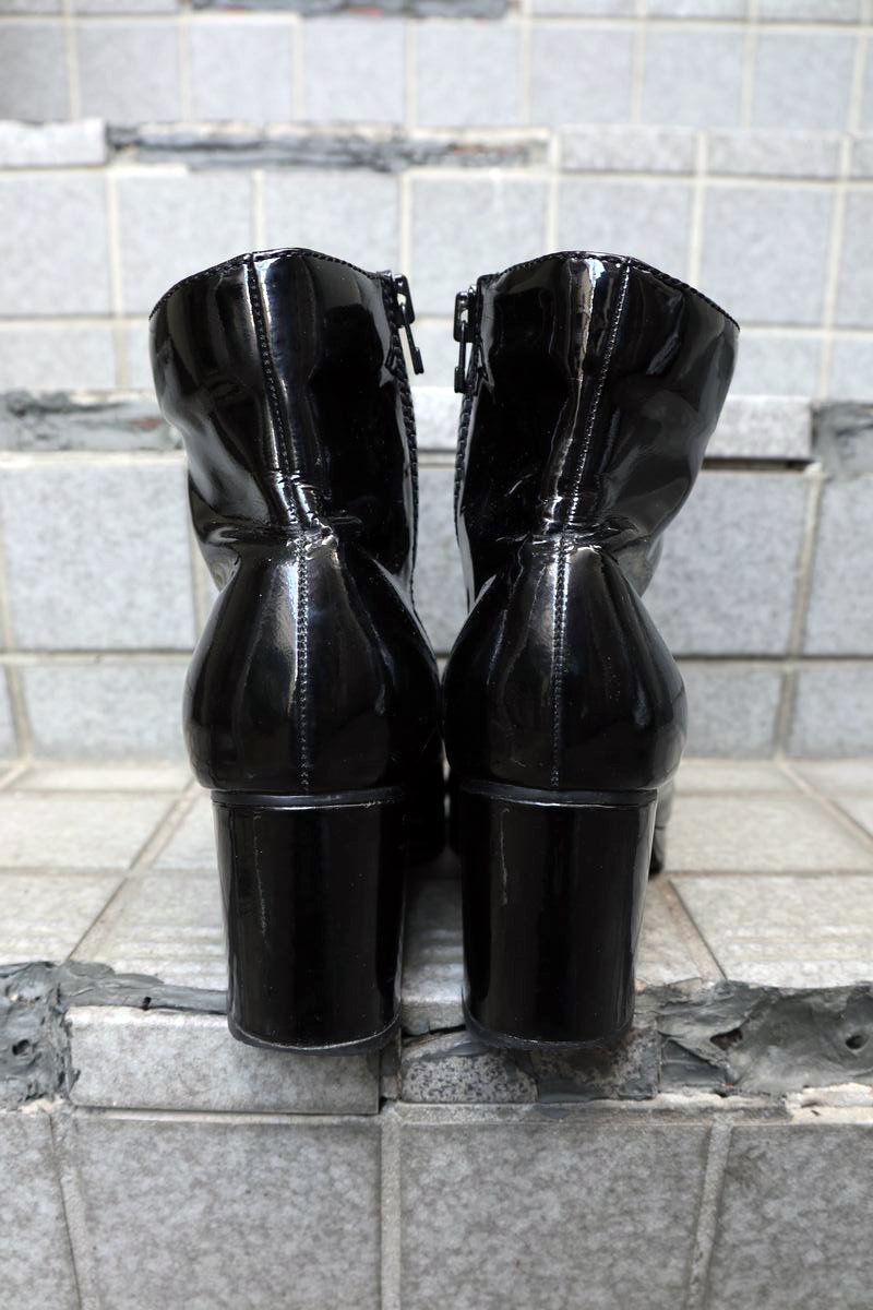 エナメルヒールブーツ ブラック