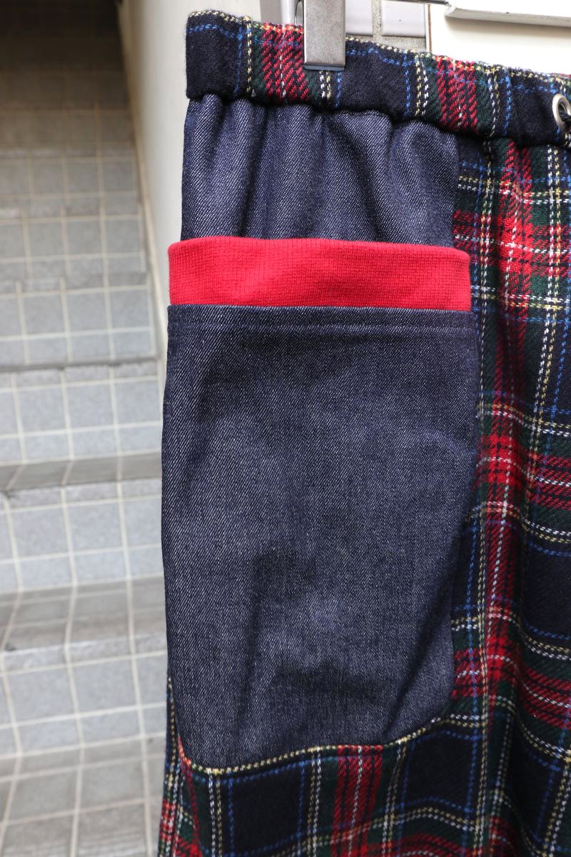 チェック柄×デニム地切替クロップドワイドサルエルパンツ