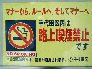 今度、各区役所に路上喫煙禁止の範囲を聞いてみよぅ。