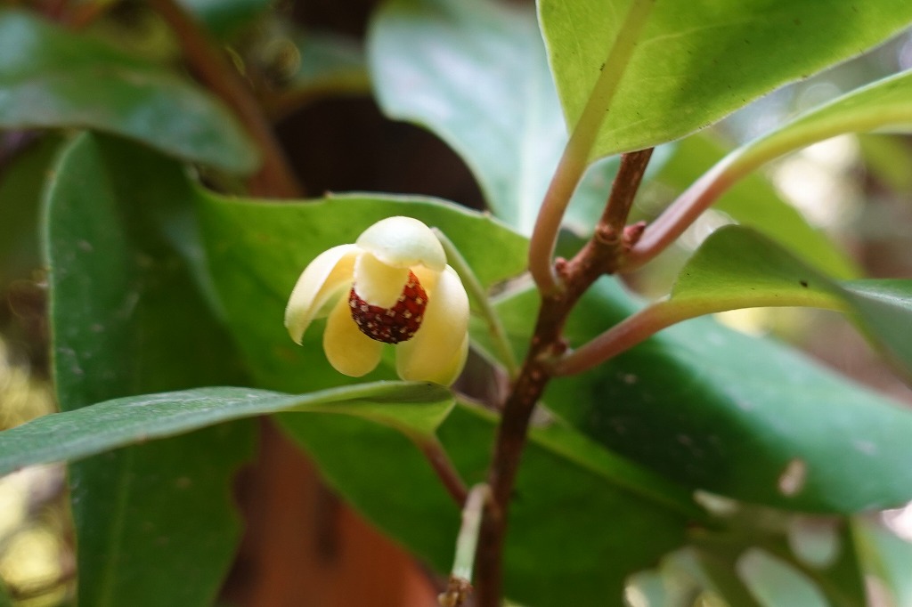 サネカズラ(実葛:マツブサ科)秋にすてきな赤い実を見て、花を見たくて待ってました。