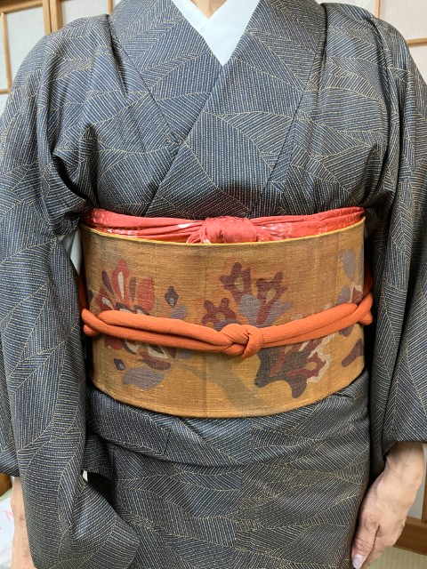 大島紬は地味目な色がほとんどですので帯を派手目なものを合わせて楽しめます。
