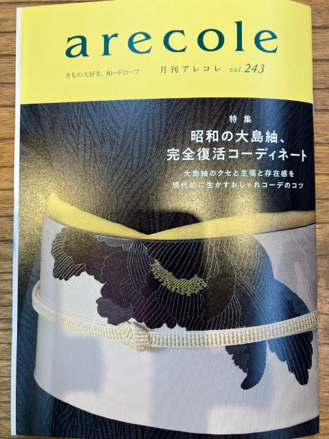 きものの月刊誌で「arecole」(定期購読のみ)がありましてちょうど今月号が大島紬の特集でした