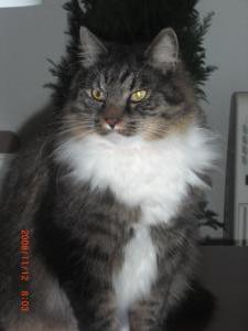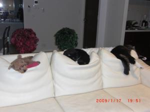 冬でも半そでのたまが長袖で震えていると、にっこりホカロンをくれました。ミュ~、グシュ。