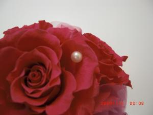 プリザ溶液は親油性なので、アートの真珠を溶かします。