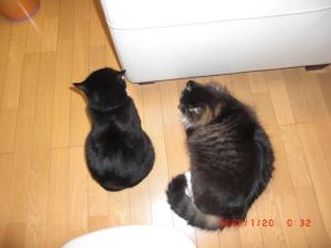 よく見えませんが、元裏町のちゃんこことJYOJYO,ママ猫です。