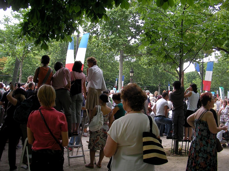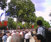 エッフェル塔の前の公園でコンサート。コンサートの後には同じ場所で花火の打ち上げ。ワイン、ビール、サンドイッチなどなど食べて、踊って、歌って、皆すっごい楽しんでる。老若男女。炎天下、暑かった~。ちなみにコンサートの最後はミッシェル・ポルナレフ。知ってる?コンサートは皆で合唱!!(動画)クリック→エッフェルとコンサート