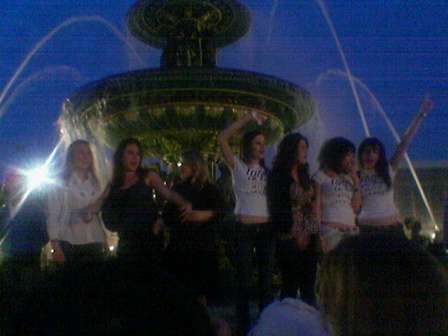 噴水前で喜ぶパリジェンヌ
