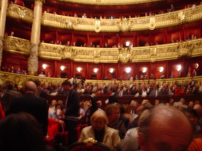 今日はオペラ初体験。日本からのお客様がご覧になるのでご一緒させていただいたが、とってもenjoy!感謝です。。。まずは劇場の壮大さに圧倒された。お題は「プラテー」というフランスオペラ。なんと席は指揮者のすぐ後ろのオーケストラ席。130ユーロ。舞台の臨場感はもちろん、指揮者の呼吸、演奏者の表情も合わせて見ることができた。ただ、天井のシャガールの壁画や肝心の字幕スクリーンをとても見にくい席であったのが残念。事前の予習なしであったが、内容はカエルが主役の恋愛ストーリー。舞台は緑色が中心で、華やかで、ダンスありで、カエルがかわいらしく、とても楽しく見ることができた。日本に一時帰国する際には、日本語字幕バージョンのDVDをゲットしてみたい。