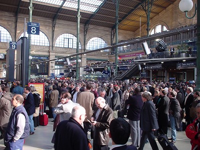 写真は学生が線路を占拠中のGare du Nord(北駅)TGV、Thalysが2時間ストップ