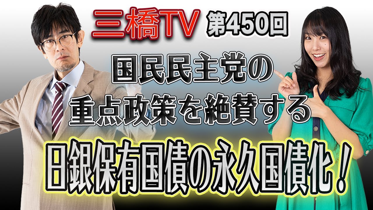 [3] 国民民主党の重点政策を絶賛する 日銀保有国債の永久国債化! [三橋TV第450回]三橋貴明・高家望愛動画をご覧いただきありがとうございます!ぜひ、チャンネル登録、高評価、コメントをお願いします。チャンネル登録はコチラ▶︎http://dpweb.jp/38YouTube* * * * * * * * * * *▶︎三橋貴明の新刊本【日本の没落を望む7人の反日主義者】「嘘、嘘、嘘…」なぜ彼らはこんなにも平気で嘘が...www.youtube.com
