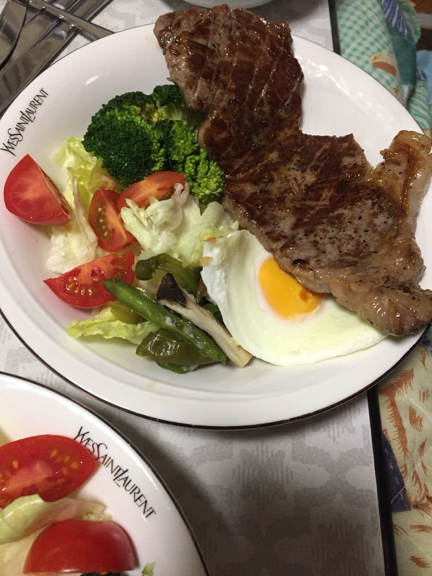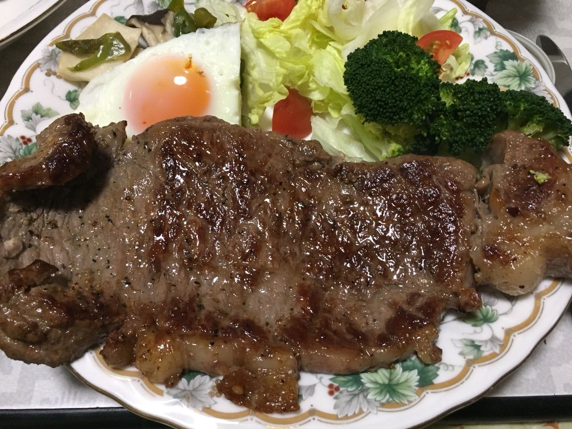 あまりの大きさに肉が皿からはみ出ちゃってます。( ^ω^ )